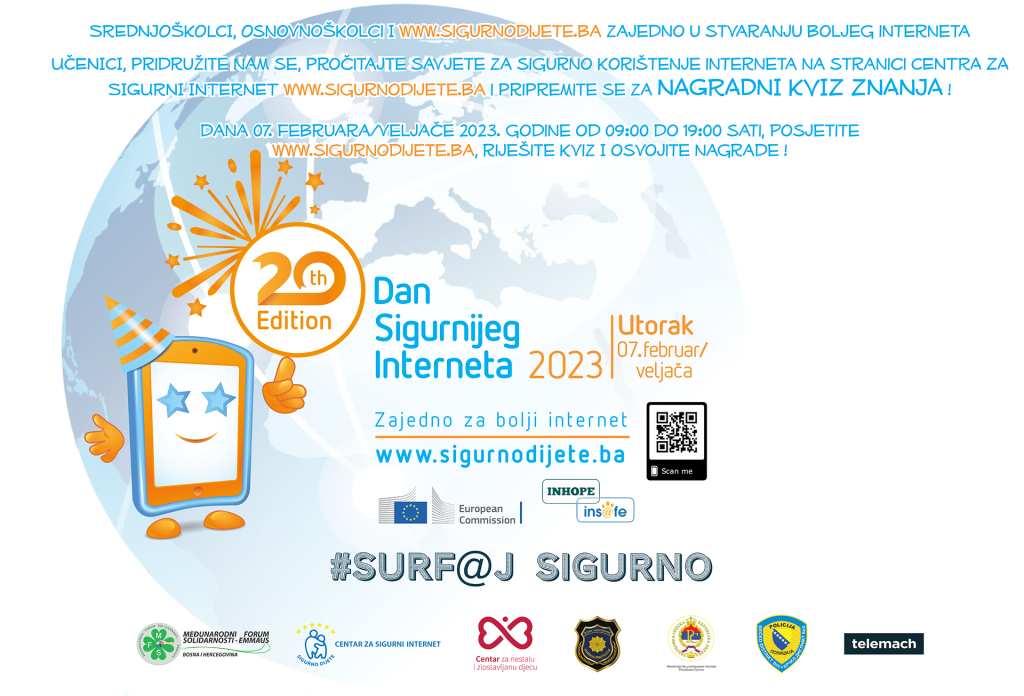 Прочитајте корисне информације и спремите се са квиз знања и освојите вриједне награде. Квизу можете приступити на сајту www.sigurnodijete.ba који ће бити активан на дан обиљежавања дана сигурнијег интернета од 09:00 до 19:00 сати, након чега ће систем апликације са онлајн такмичење генерисати побједнике квиза међу дјецом која су тачно одговорила на 80% и више питања. Побједници и освојене награде ће бити објављени на страници Центра за сигурни интернет.