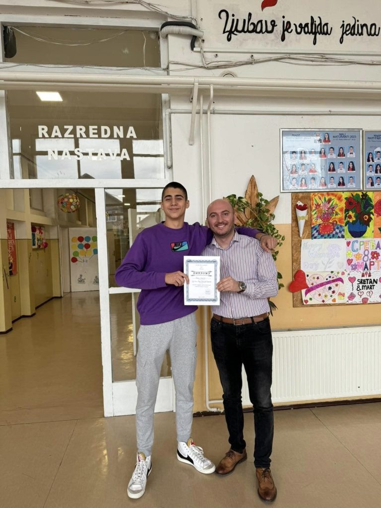 Павле Антић, ученик деветог разреда, освојио је прво мјесто. Ученика припремала наставница Бранка Зекановић.