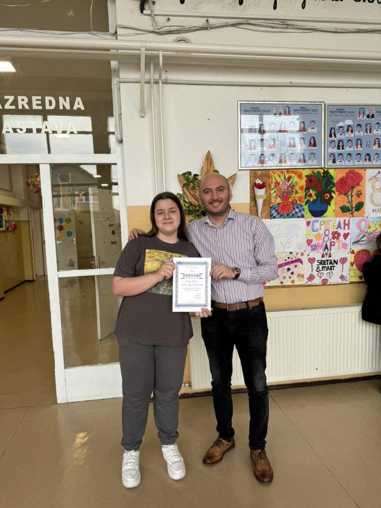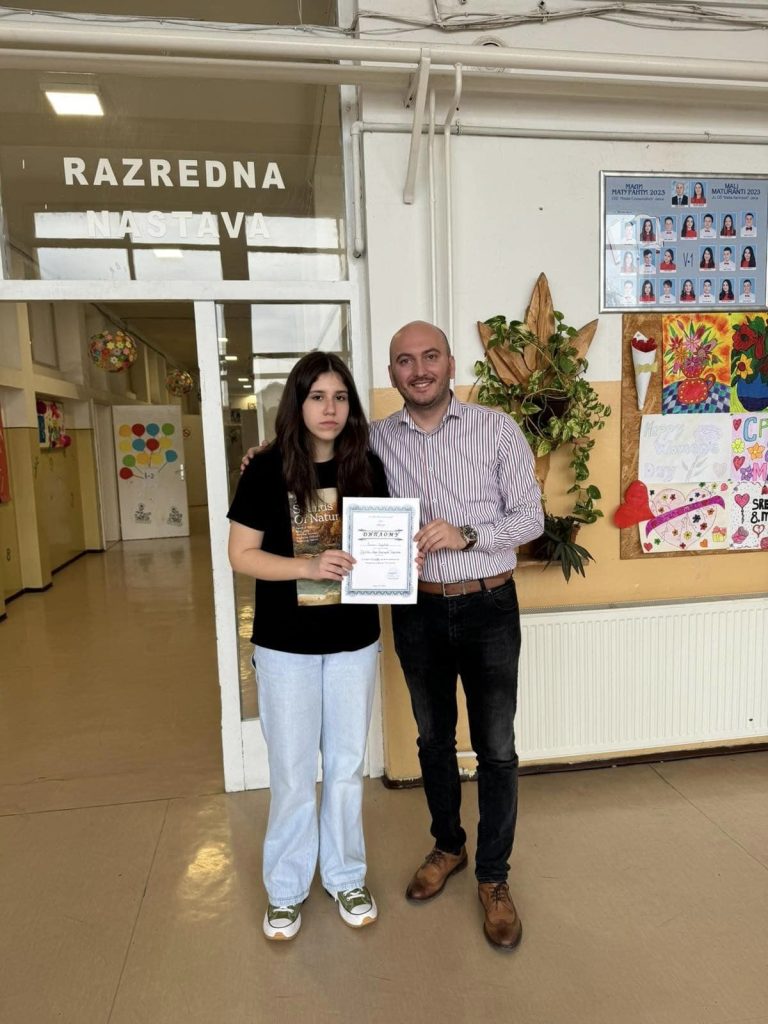 Ана Бојић, ученица осмог разреда, заузела друго мјесто. Ученицу припремала наставница Ангелина Ристић.