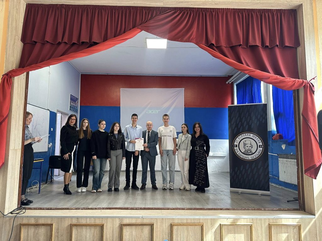 Екипа наше школе коју су чинили Ана Николић, Елена Радовић, Дуња Нинић, Јована Васић, Вељко Токановић и Немања Ђурић побједник је такмичења. Честитамо им и желимо успјех у наставку такмичења. Ученике припремале предметне наставнице Бранка Сарић и Виолета Шеовац.