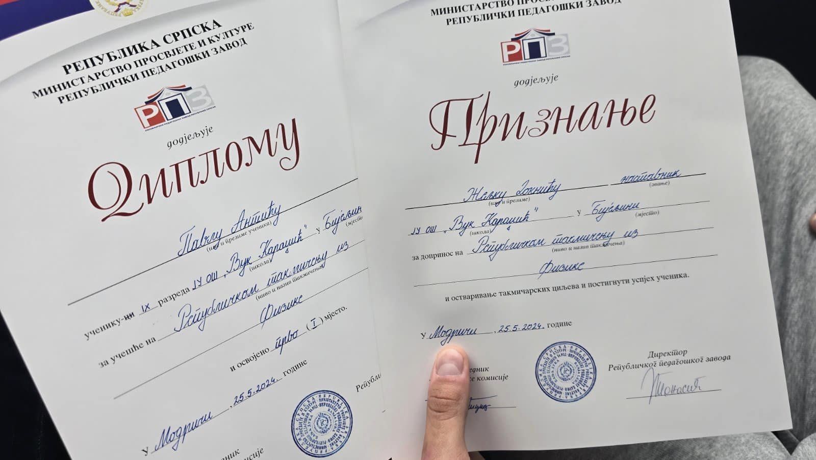 Наш Павле, након екипне златне медаље у шаху освојио је и прво мјесто на Републичком такмичењу из физике.