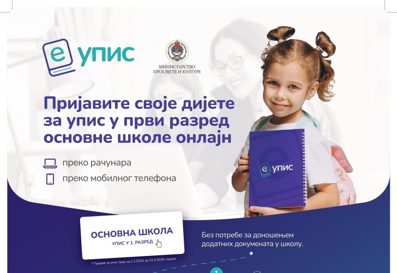 Министарство просвјете и културе позива све родитеље будућих првачића да искористе предности еУпис-а и електронским путем пријаве своју дјецу за упис у први разред основне школе, поштујући назначене термине.